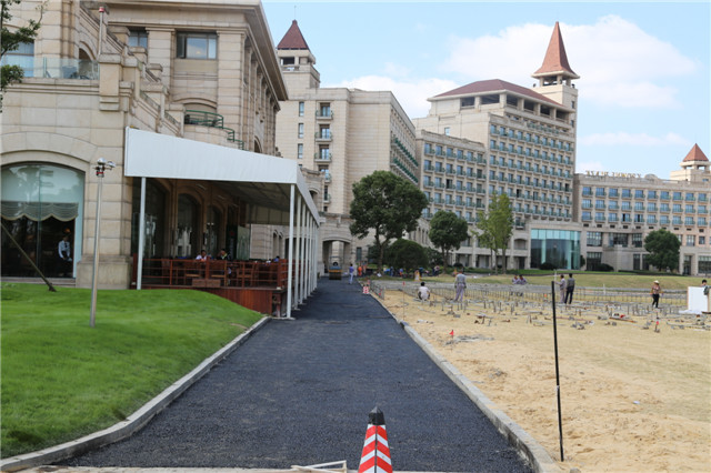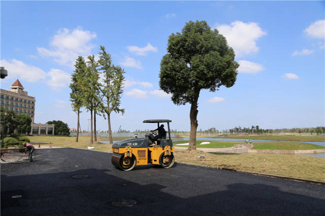 为配合2014BMW大师赛的顺利开展,确保在赛事周期间可以给前来观赛的朋友们带来更好的体验,2014BMW大师赛入口处至俱乐部餐厅露台前方,工人们正如火如荼地铺设柏油路面,远远就听见机器的轰鸣声,好一派忙碌的场面。
