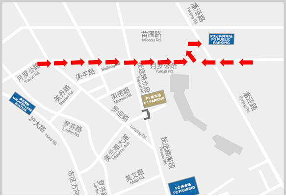 驾驶路线:沪太路-美兰湖大道-抚远路北段(P1);