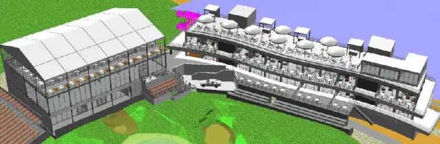 根据不同的嘉宾单位划分不同的区域,主要通过搭建帐篷及利用球场现有建筑的形式设立。